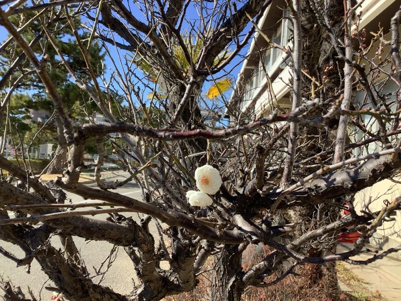 昨日と違って風はなく、日差しは暖かい日になりました。今日、職員室の前の梅の花が咲きました。春は確実に近づいています。