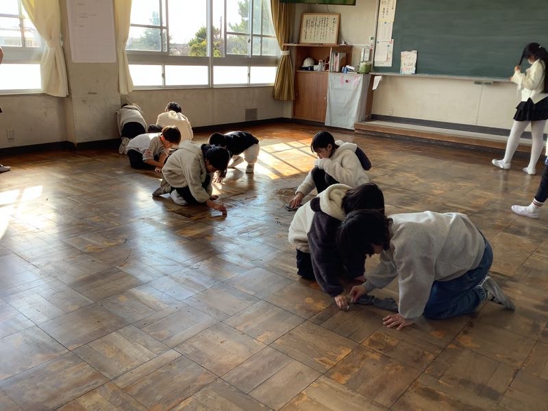 1年間使った教室をきれいにしました。特に床を汚れを取りました。