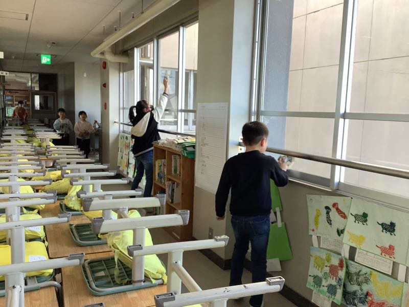 窓拭きを頑張ってやっていた子もいました。
