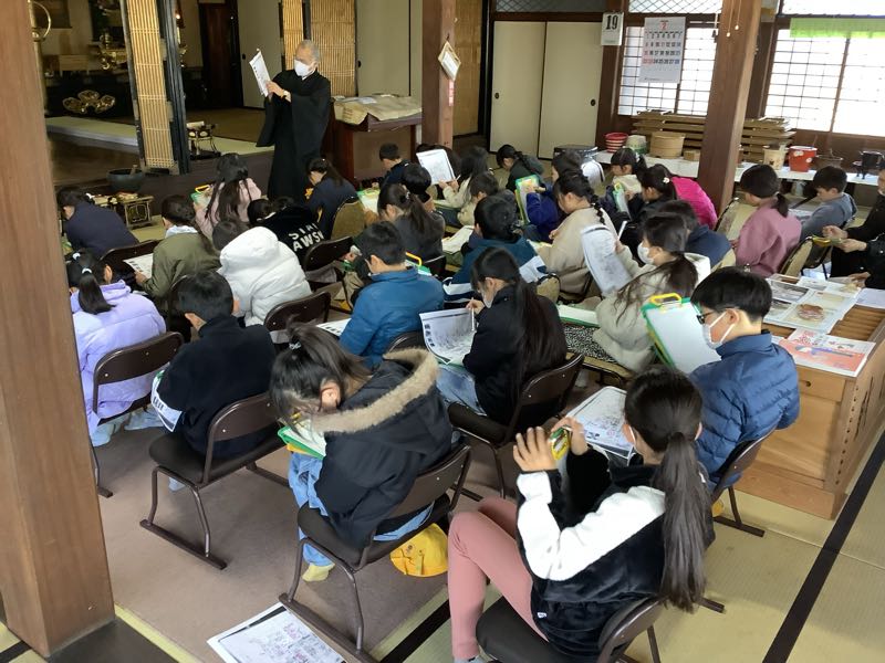 3年生は今日、校区にある正覚寺へ校外学習に行きました。社会科の授業の一環として、昔の西尾や吉良についてお話を聞きました。