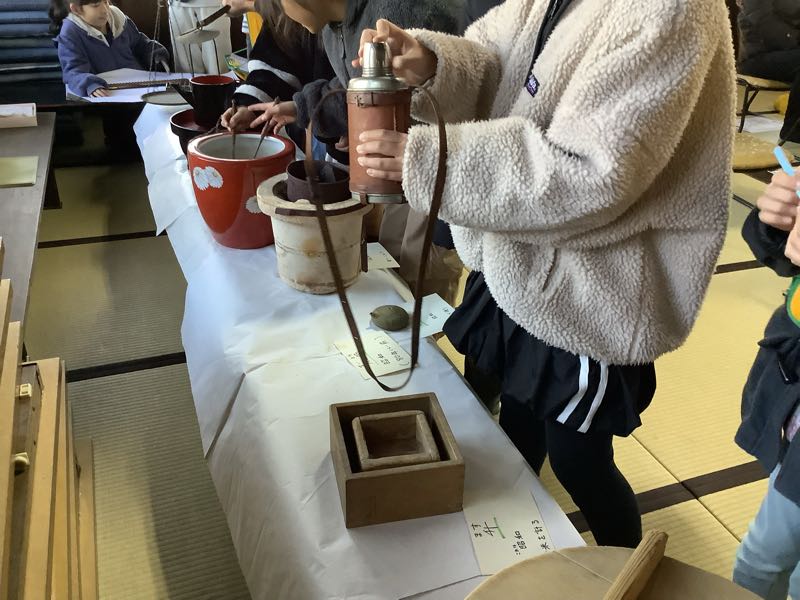 また、たくさんの昔の道具も用意していただき、見たことがないものに興味津々で、昔の生活について考えを深めました。