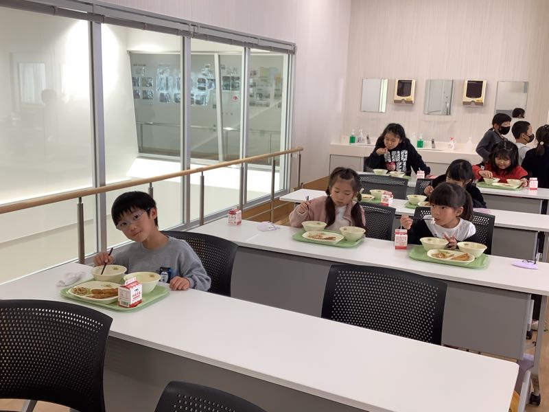 給食センターで食べる給食は、一段とおいしかったようで、どの子もうれしそうにもりもり食べていました。