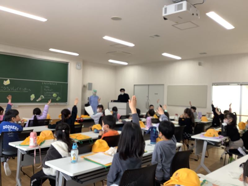 給食センターの方に、みんなが考えた質問にたくさん答えてもらいました。給食のひみつを知ることができました。