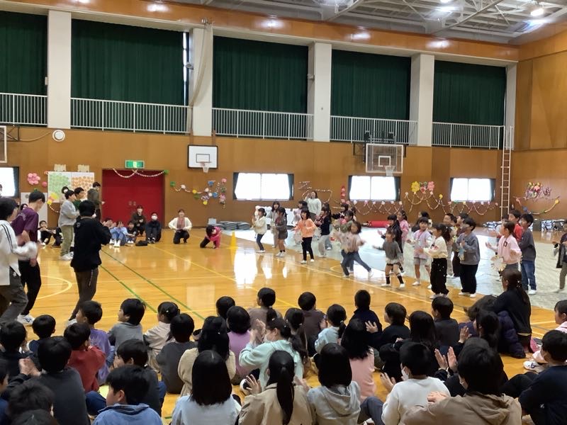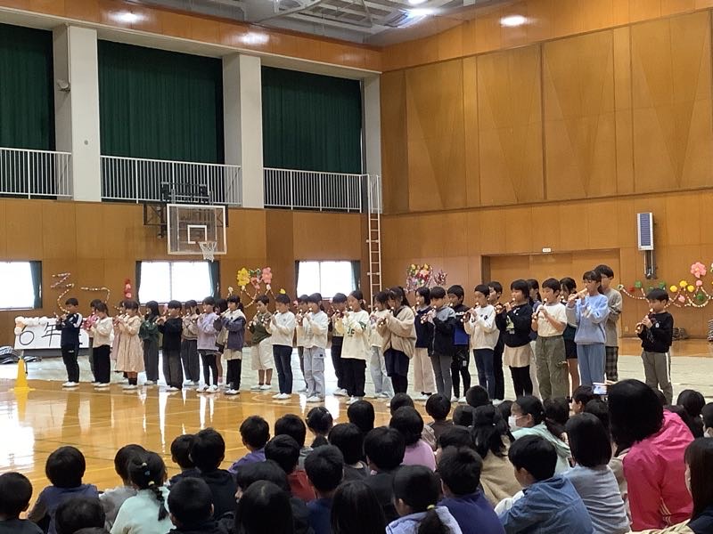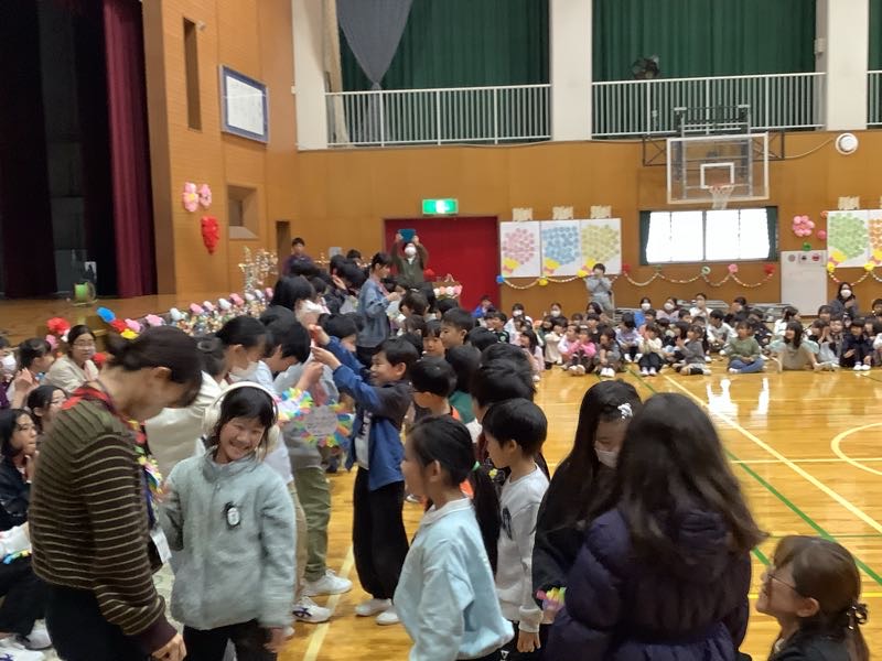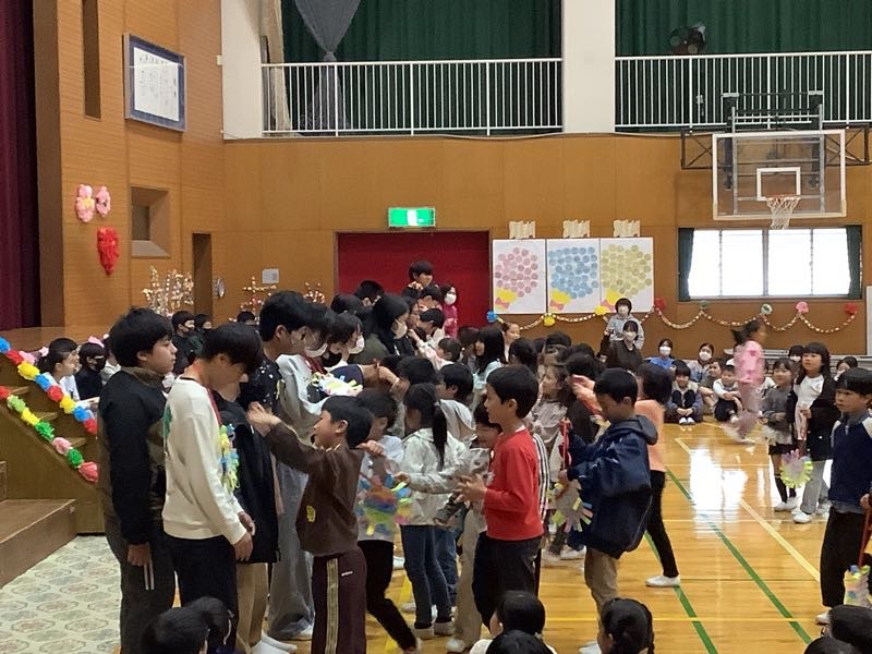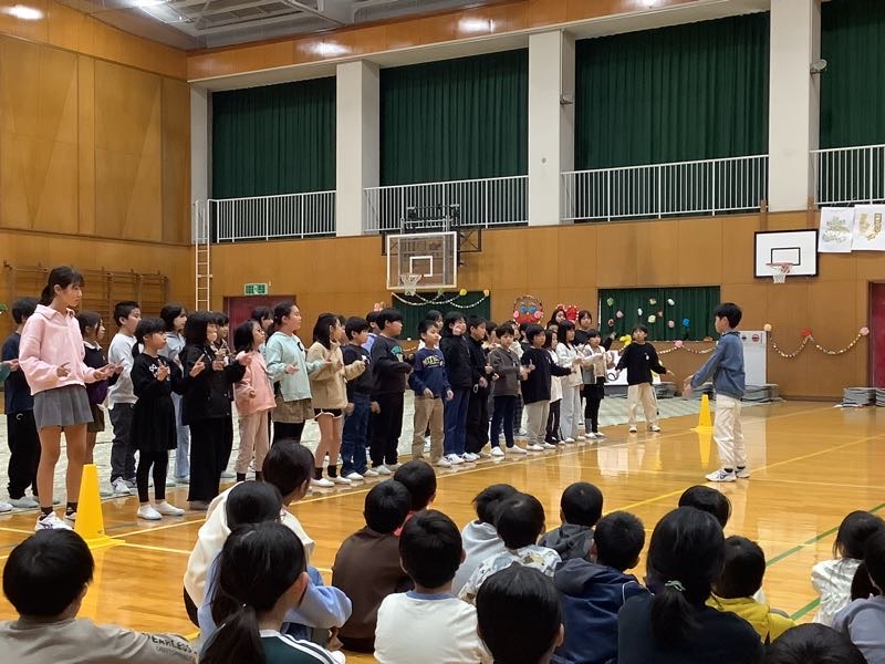 各学年からの贈りものは、言葉やダンス、歌、楽器の演奏、クイズで思いを伝えるものでした。