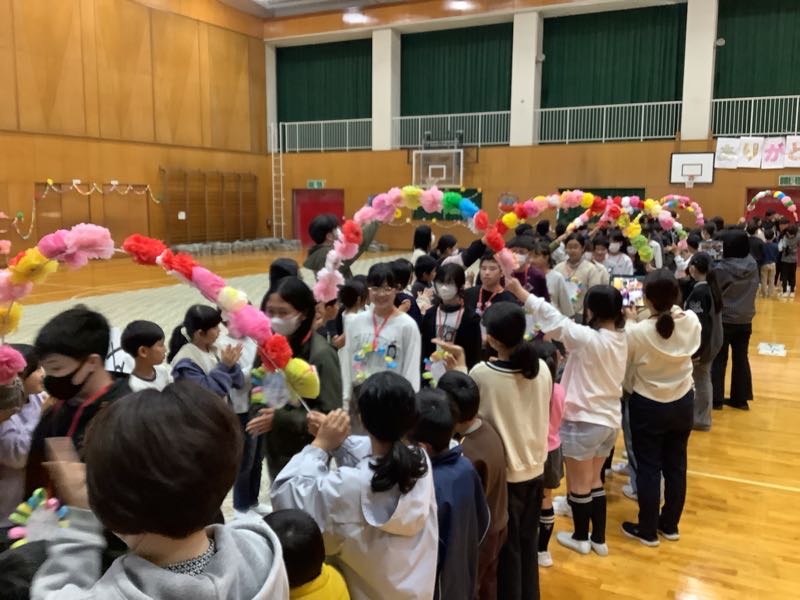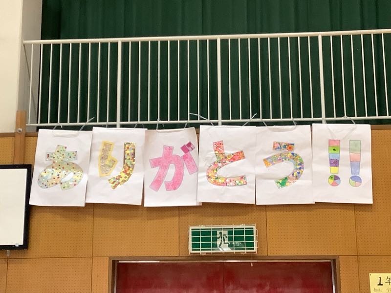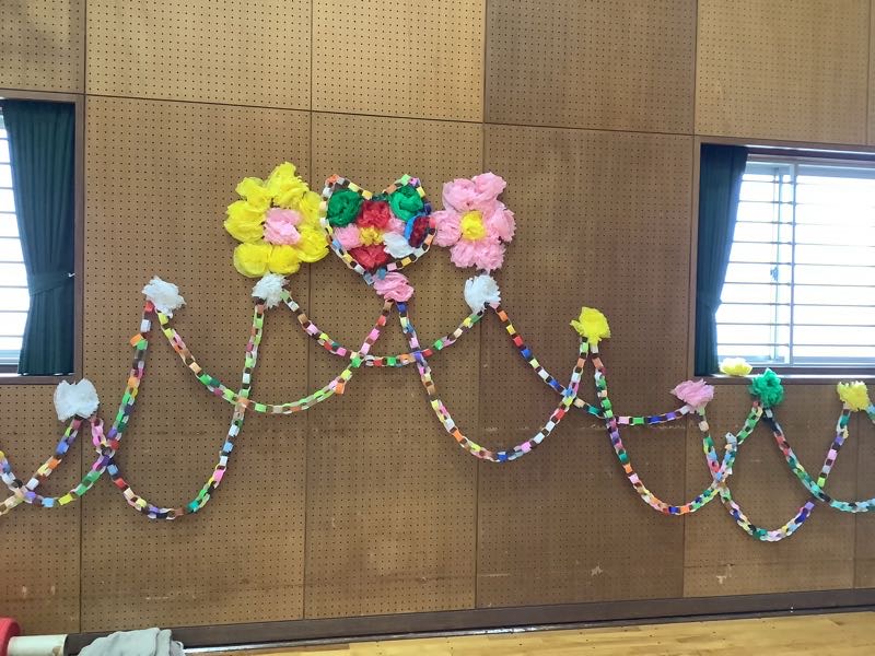 体育館はありがとうメッセージやお花や輪飾りでありがとうがいっぱいのなりました。