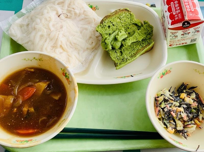 お昼ご飯は、おやじの会特製肉うどん。他にも焼き豚、角煮、天野農園さんのトマトやジュースなどスペシャルランチをいただき大満足。