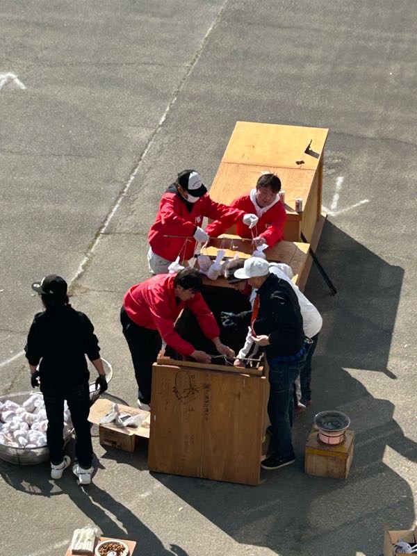 おやじの会のみなさんが、外でハムを乾燥させ、燻製してくれました。