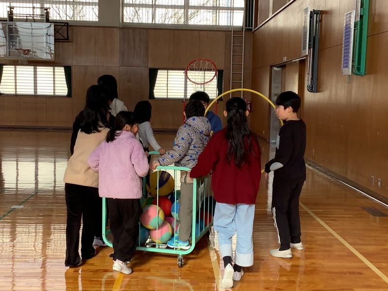 吉田小学校に来ることや体育館で遊ぶこと、友達と関わることにだいぶ慣れ、笑顔がたくさん見られました。それを見て4年生の子どもたちも嬉しそうでした。